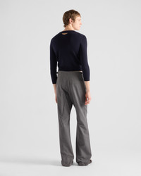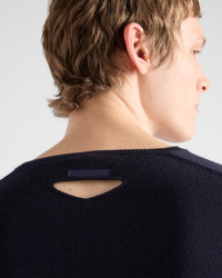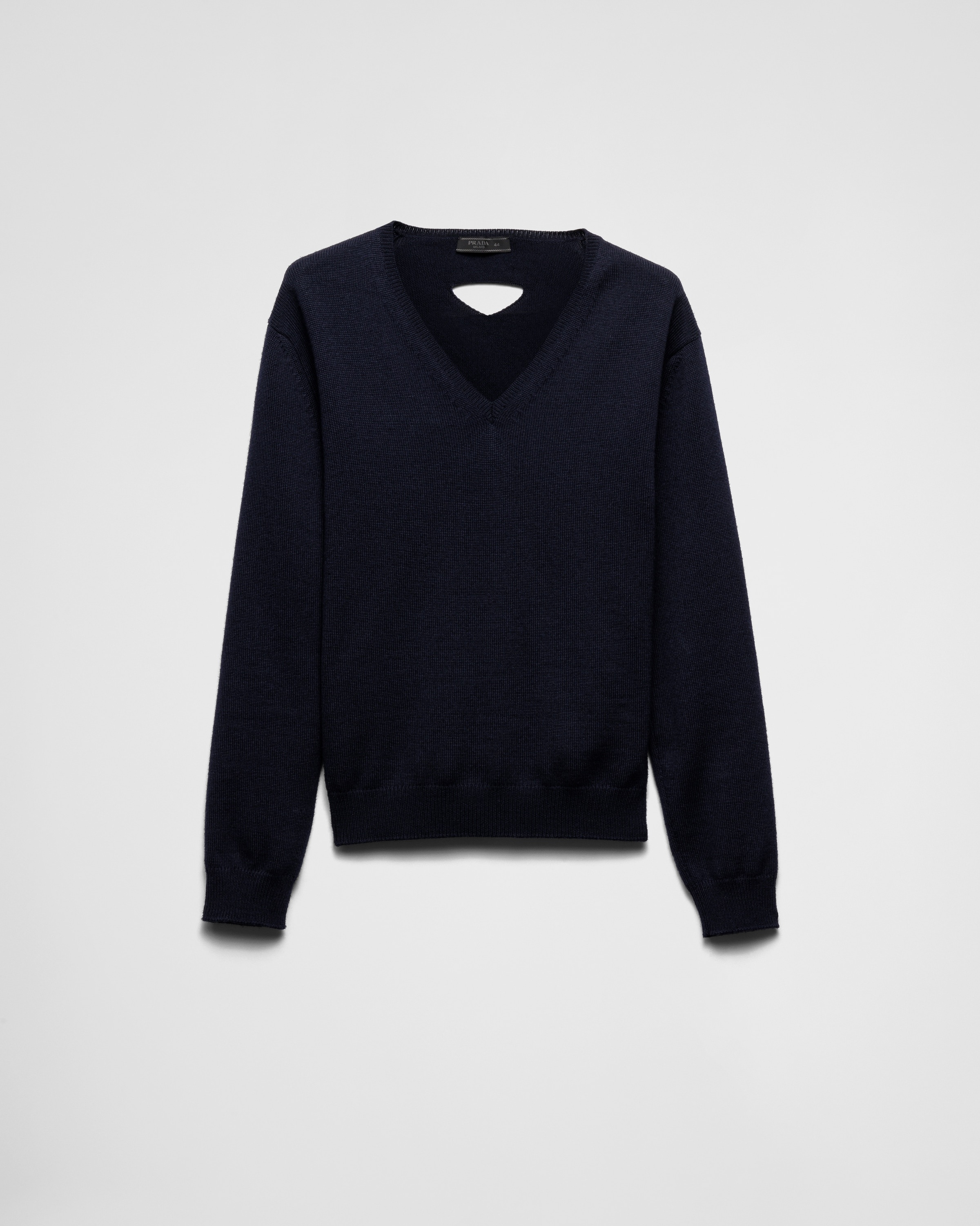 New proportions define this wool sweater with a slim fit, reinterpreted with unexpected details. The emblematic geometric shape of the Prada triangle presented as a cut-out on the back completes the contemporary design. - 商品代號: UMB967_16GM_F0008_S_OOO - Plain knit - Slim fit - Ribbed knit neck trim - Semi-raglan shoulder - Ribbed knit cuffs and hem - Knit triangle logo - 進口 - The model is 190 cm tall and wears a size 48 高度: 55cm MATERIALS 主要物料: 100% virgin wool