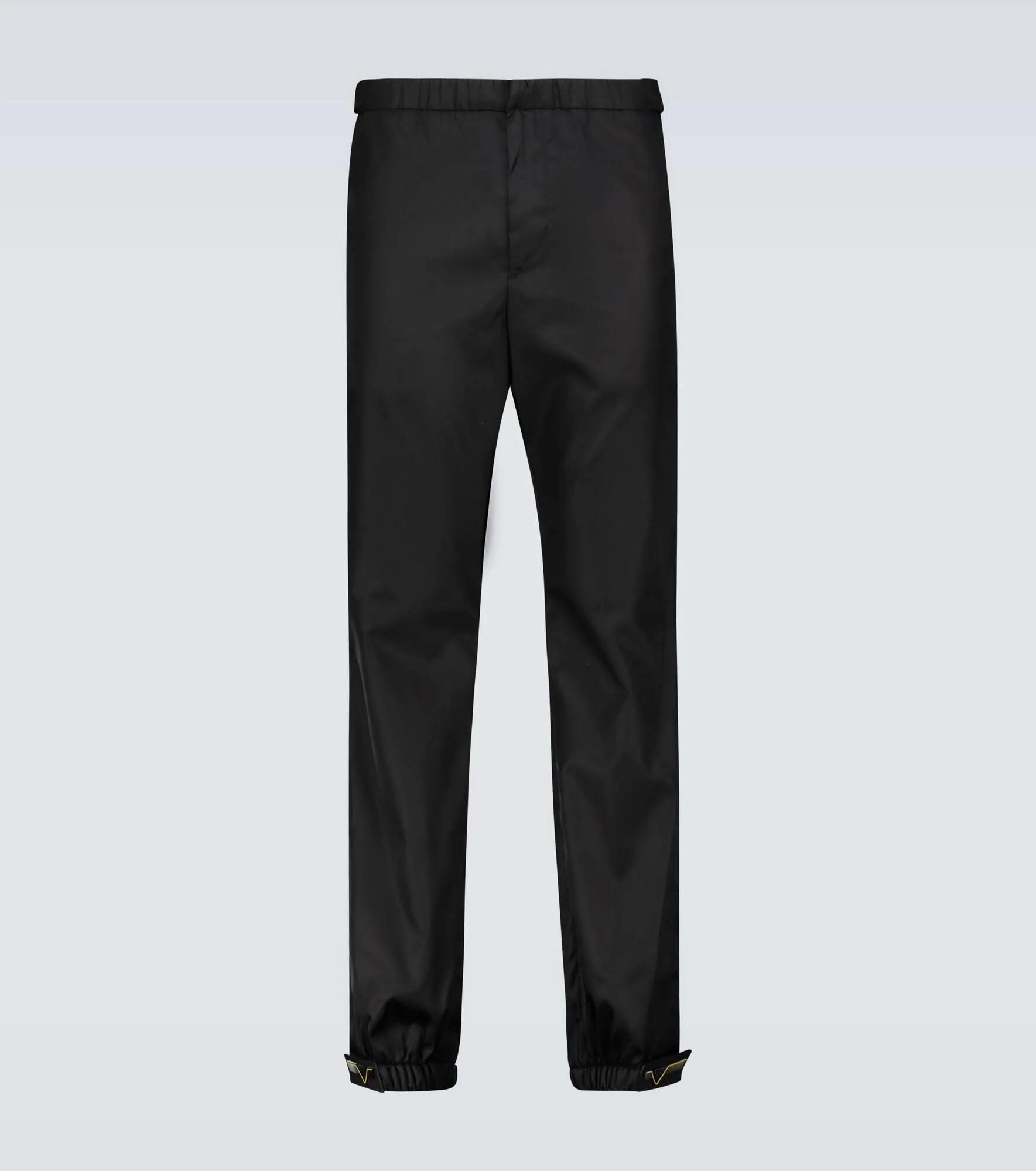These relaxed-fit drawstring pants from Prada are woven from black nylon, and feature VELCRO® straps on the waist and cuffs, and rubber logo detailing at the ankles. Product Details - Elasticated ankle cuffs - Designer color name: 0 - Cuff tab - Closure: VELCRO® fastening, zipper, hook fastening - Care instructions: hand wash - Elasticated drawstring waist - Pockets: side slit pockets, back pockets - Lining: partially lined - Pocket lining: 100% cotton - Item number: P00493890 Size & Fit - True to size - Adjustable at the waist - Tapered leg - The model in the picture is 185cm-6'1" and wearing a size M
