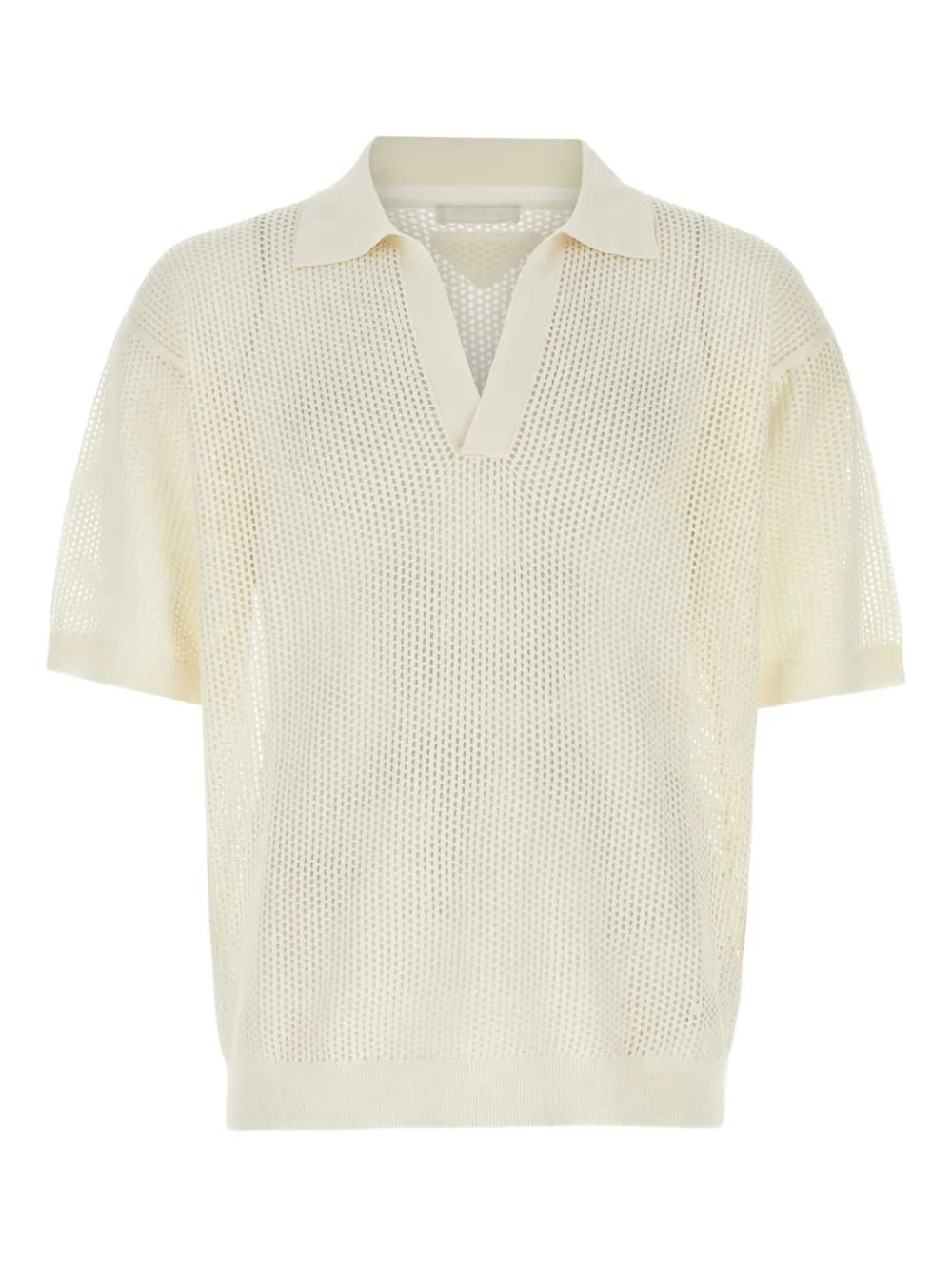 open-knit polo shirt Highlights - White - Silk-cotton blend - Short sleeves - Polo collar Composition Silk 59%, Cotton 41% Washing instructions Read Manufacturer Guidelines