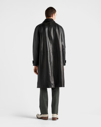 An oversized line characterizes this leather coat that distinctively reinterprets a classic tailored menswear style. - Product code: UPS684_17UA_F0002_S_OOO - Lined garment - Oversized fit - Center button closure - Shirt-style collar - Straight sleeve, cuff with strap and button - Wide welt pockets - Leather triangle logo on the back - Final waxing treatment - Imported - The model is 191 cm tall and wears a size 48 Height: 115cm MATERIALS Main material: Buffalo
