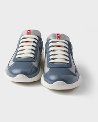 These patent leather sneakers with bike fabric inserts are inspired by an iconic aesthetic. The unmistakable Prada Linea Rossa logo on the tongue and sole enhances the design. - Product code: 4E3400_ASZ_F04RD_F_G000 - Upper: patent leather and technical fabric - Prada Linea Rossa logo on the tongue and sole - 40 mm light, flexible rubber sole - Rubber tread - Imported MATERIALS Main material: Calfskin