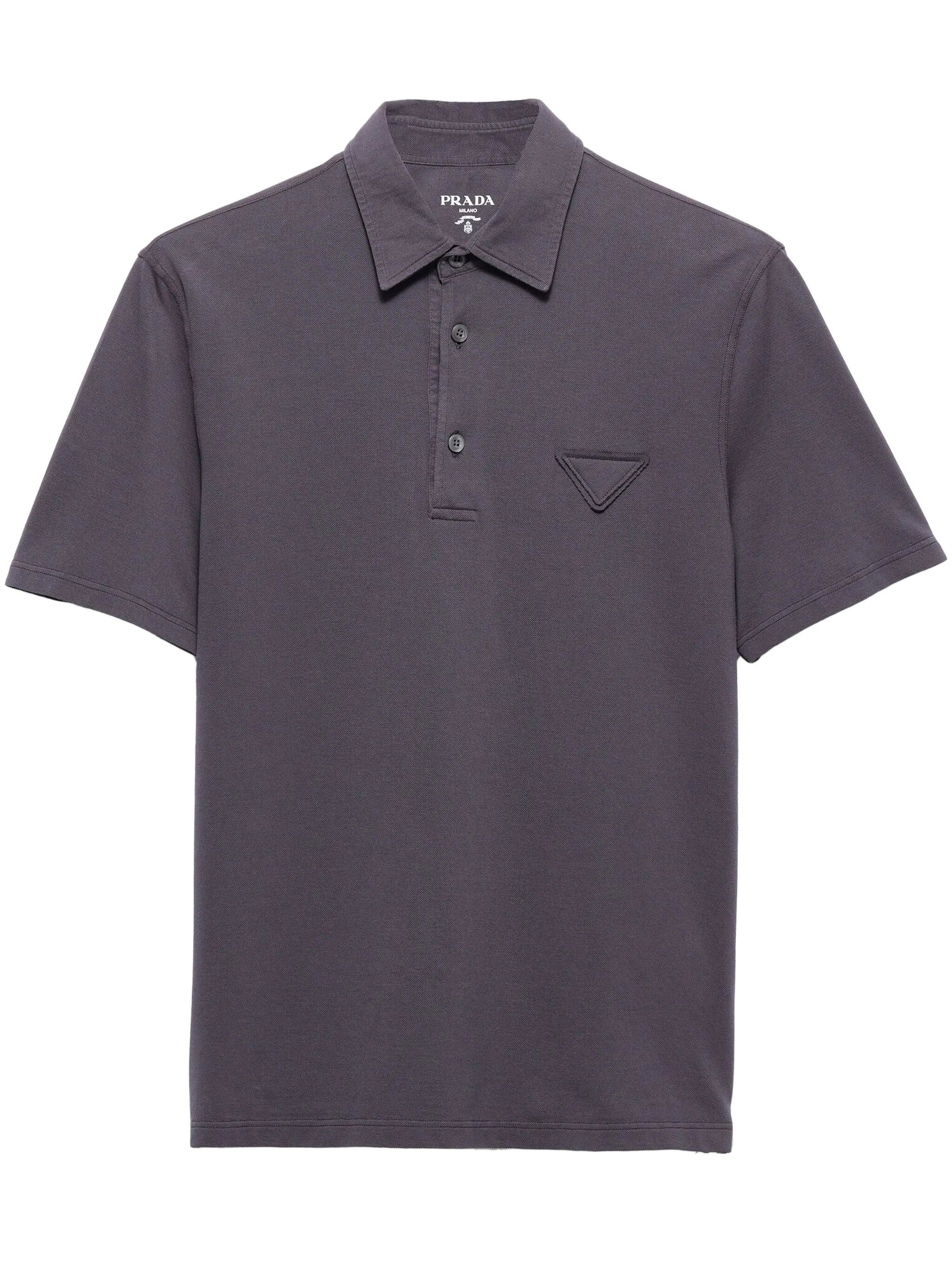 medium grey front button placket triangle logo classic collar short sleeves - Color: GREY - Made in: Italy - Designer Style ID: UJN851 S WMO 16JM F0207 Composition and care Cotton: 100.0%, Mother Of Pearl: 100.0%