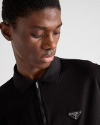 This pique polo shirt, a classic garment presented with a new sporty attitude, has a boxy cut with sleek lines. Re-Nylon details that give a functional character to the short-sleeved silhouette. - Product code: UJN903_1866_F0002_S_WMO - Boxy fit - Short sleeve - Ribbed knit collar - Straight hem - Zipper closure - Enameled metal triangle logo - Length 72 cm, Size: M - Imported Height: 72cm MATERIALS Main material: 100% Cotton
