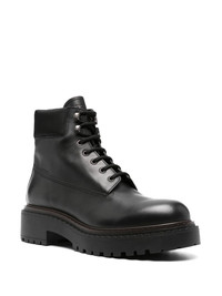 leather work boots Highlights - Black - Calf leather - Brushed finish - Front lace-up fastening - Padded ankle - Debossed logo to the side - Debossed logo to the side - Logo-debossed tongue - Metal eyelet detailing - Round toe - Branded insole - Chunky rubber sole Composition Outer: Calf Leather 100%, ECONYL® 100% Lining: Calf Leather 100% Sole: Rubber 100%, Calf Leather 100% SIZE & FIT Measurement HEEL 2.36 in(6 cm)