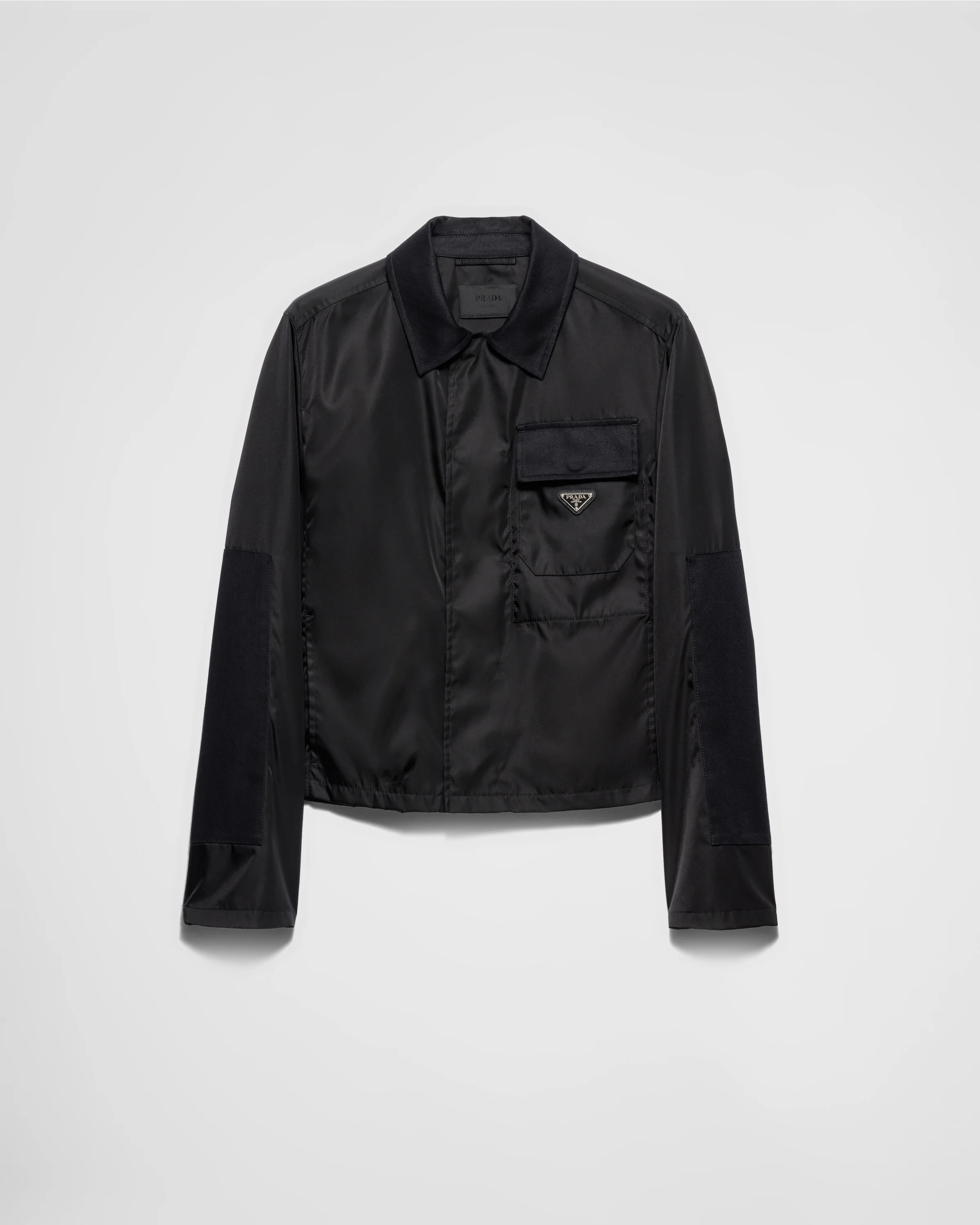 This contemporary and refined Re-Nylon jacket is characterized by its minimalist lines and functional details. The emblematic enameled metal triangle logo completes the style with a distinctive note. For sustainable product care and to preserve its characteristics and reduce the dispersion of microfibers, avoid frequent washing, air out the garment after each use, and have it dry cleaned by a specialized, ecological dry cleaner. - Product code: SGC828_16HH_F0002_S_OOO - Regular fit - Shirt-style collar - Straight sleeve - Button closure - Inseam pockets - Drop shoulder - Straight hem - Unlined - Enameled metal triangle logo - Imported - The model is 189 cm tall and wears a size 48 Height: 65cm MATERIALS Main material: 100% recycled polyamide