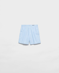 Classic Bermuda shorts are reinterpreted with a light design and casual style. The garment made of poplin is characterized by a deliberate wrinkled effect, a distinctive detail of Prada collections. - Product code: SPH490_17KY_F0012_S_OOO - Elasticized waistband - Button fly - Belt loops - Inseam pockets - Back pocket with button - Fabric triangle logo and sartorial logo label on the back - Imported - The model is 189 cm tall and wears a size 48 Height: 44cm MATERIALS Main material: 35% cotton, 65% polyester