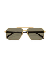 Prada PR A57S rectangle frame sunglasses Highlights - Gold-tone - Rectangle frame - Tinted lenses - Straight arms - Curved tips - Nose pads - Curved nose bridge - Gold-tone hardware - Logo print at the lens - Logo print at the arm - These glasses come with a protective case. Composition Steel 100% SIZE & FIT Measurement Arm Length 5.7 in(14.5 cm) Bridge Width 0.59 in(1.5 cm) Lens Diameter 2.28 in(5.8 cm) Total Width 5.59 in(14.2 cm)
