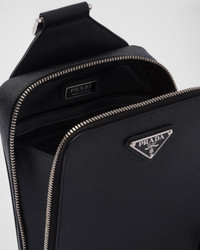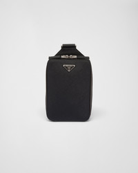 This elegant Saffiano leather shoulder bag with a handle, shoulder strap, and two zipper pockets has a sleek silhouette. - Product code: 2VZ106_9Z2_F0002_V_OOO - Adjustable nylon tape and leather shoulder strap - Enameled metal triangle logo on the front - Zipper closure - Interior with patch pocket - Logo-print nylon lining - Imported Height: 20cm Width: 14cm Length: 4cm MATERIALS Main material: Calfskin