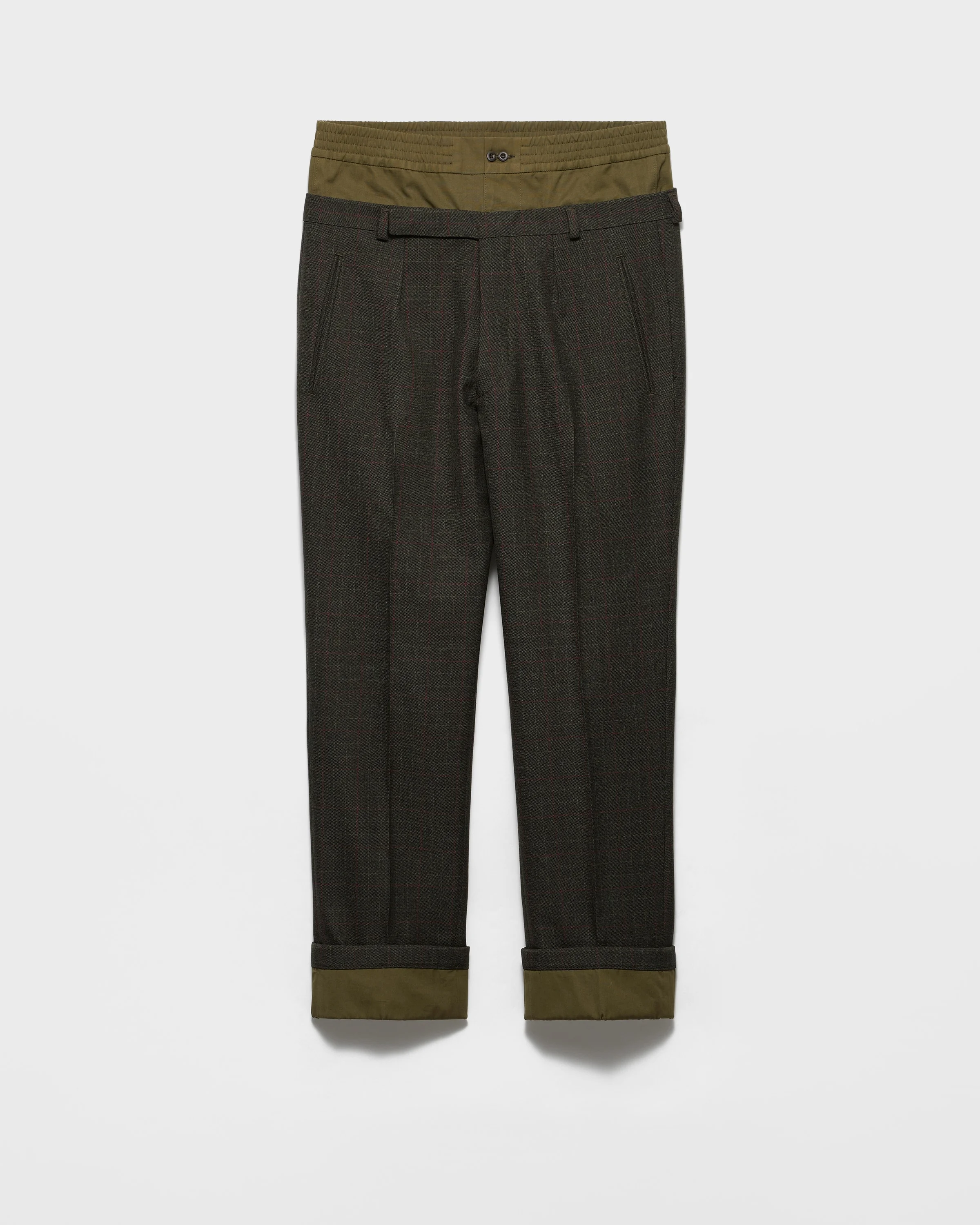 Layering, contrasts and unexpected interactions: these pants redefine the balance between formal elegance and casual style. The garment embodies distinctive, contemporary style where sartorial lines meet the casual softness of cotton details. - Product code: UP0398_18U7_F0342_S_OOO - Slim fit - Elasticized waistband - Button fly - Double welt pockets on the front - Flap patch pocket with button on the back - Hem width: 20 cm with cuff - Sartorial logo label on the back - Imported - The model is 189 cm tall and wears a size 48 Height: 98cm MATERIALS Main material: 100% Virgin Wool