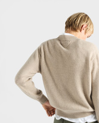Classic lines and sleek details define this refined sweater made of soft regenerated cashmere with ribbed knit trim. The tonal triangle logo completes the refined and versatile style. - Product code: UMB674_16ZJ_F0AP2_S_232 - Plain knit - Regular fit - Ribbed knit crew neck - Semi-raglan shoulder - Ribbed knit cuffs and hem - Knit triangle logo - This garment is made with regenerated cashmere yarn - Imported - The model is 190 cm tall and wears a size 48 Height: 66cm MATERIALS Main material: 100% Recycled Cashmere