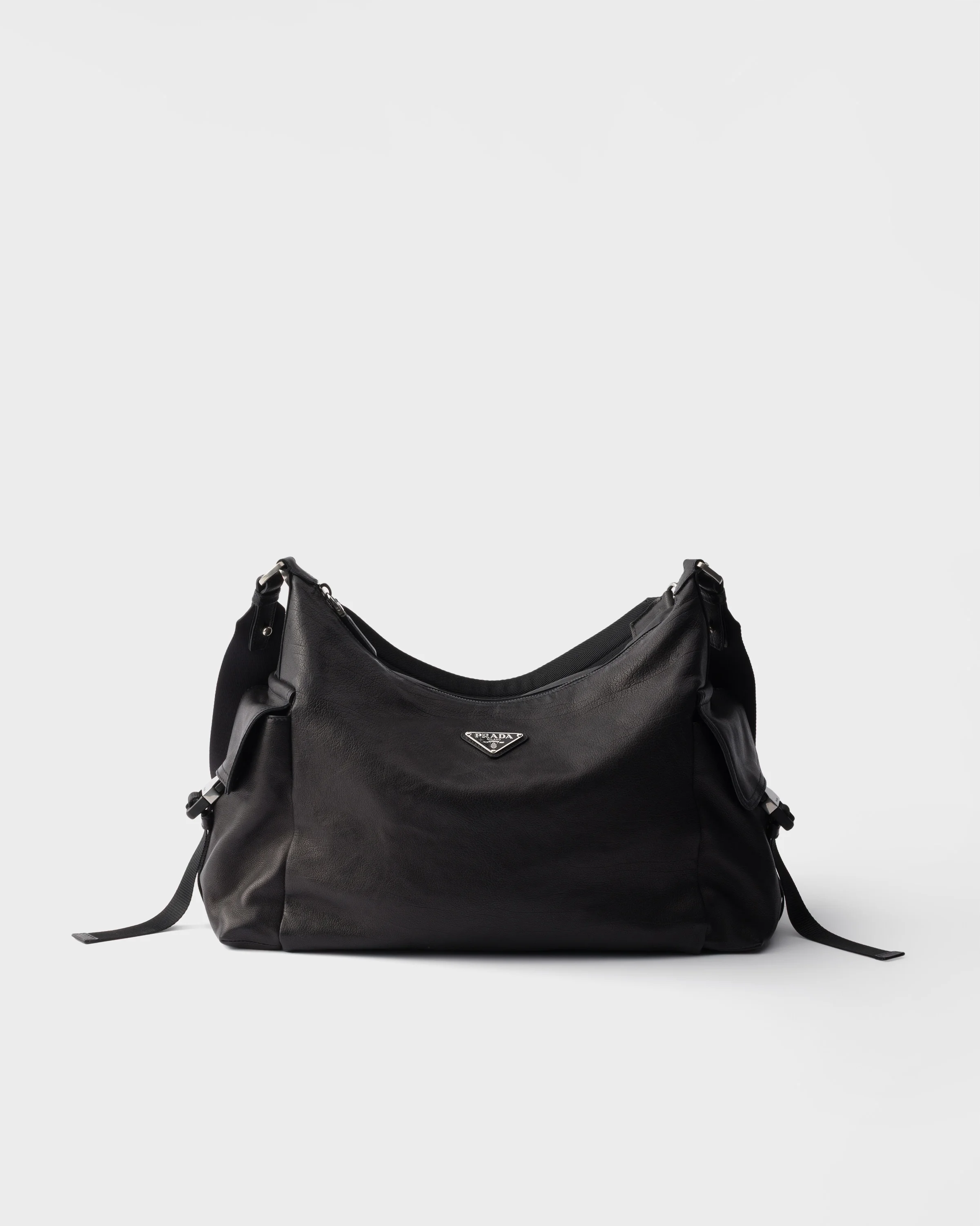 The Explore bag, a perfect synthesis of sophistication and functionality, has a soft, multi-pocket silhouette. Leather enhances the versatile, roomy design completed with refined and iconic details that reflect Prada's artisan tradition. - Product code: 2VH204_2HE8_F0002_V_OOO - Removable padded Re-Nylon handle - Detachable, adjustable woven nylon tape shoulder strap. Maximum length 125 cm - Minimum length 77 cm - Maximum drop 62 cm - Minimum drop 38 cm - Enameled metal triangle logo on the front - Zipper closure - Two external pockets with flap and side-release buckle - Internal zipper pocket - Logo-print Re-Nylon lining - Imported Height: 29.5cm Width: 43cm Length: 15cm MATERIALS Main material: Buffalo