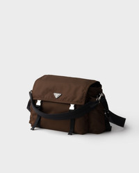 The Explore bag, a perfect synthesis of sophistication and functionality, has a multi-pocket silhouette with soft lines. Designed for urban explorations and outdoor adventures, the style comes with a shoulder strap and removable handle so it can be carried different ways. The combination of Re-Nylon and leather expresses the dualism of the design that combines technical details and refined notes. For sustainable care to preserve the product's characteristics and reduce microfiber shedding, we recommend not washing the item too often. Let the product air out after every use and have it dry cleaned at a specialized ecological dry cleaners. - Product code: 2VD082_2DW3_F0038_V_OOO - Removable padded nylon tape handle - Adjustable woven nylon tape shoulder strap. Maximum length 140 cm - Minimum length 74 cm - Maximum drop 62 cm - Minimum drop 32 cm - Enameled metal triangle logo on the flap - Flap closure with side-release buckles and zipper underneath - Four external pockets with zipper, flap and side-release buckles - Internal zipper pocket - Interior with zipper pocket - Re-Nylon lining - Imported Height: 22cm Width: 42cm Length: 20cm MATERIALS Main material: Recycled Polyamide