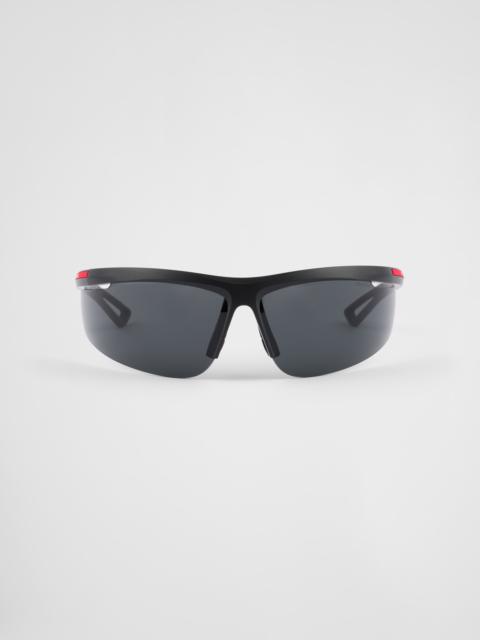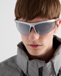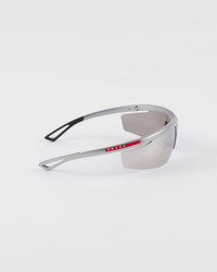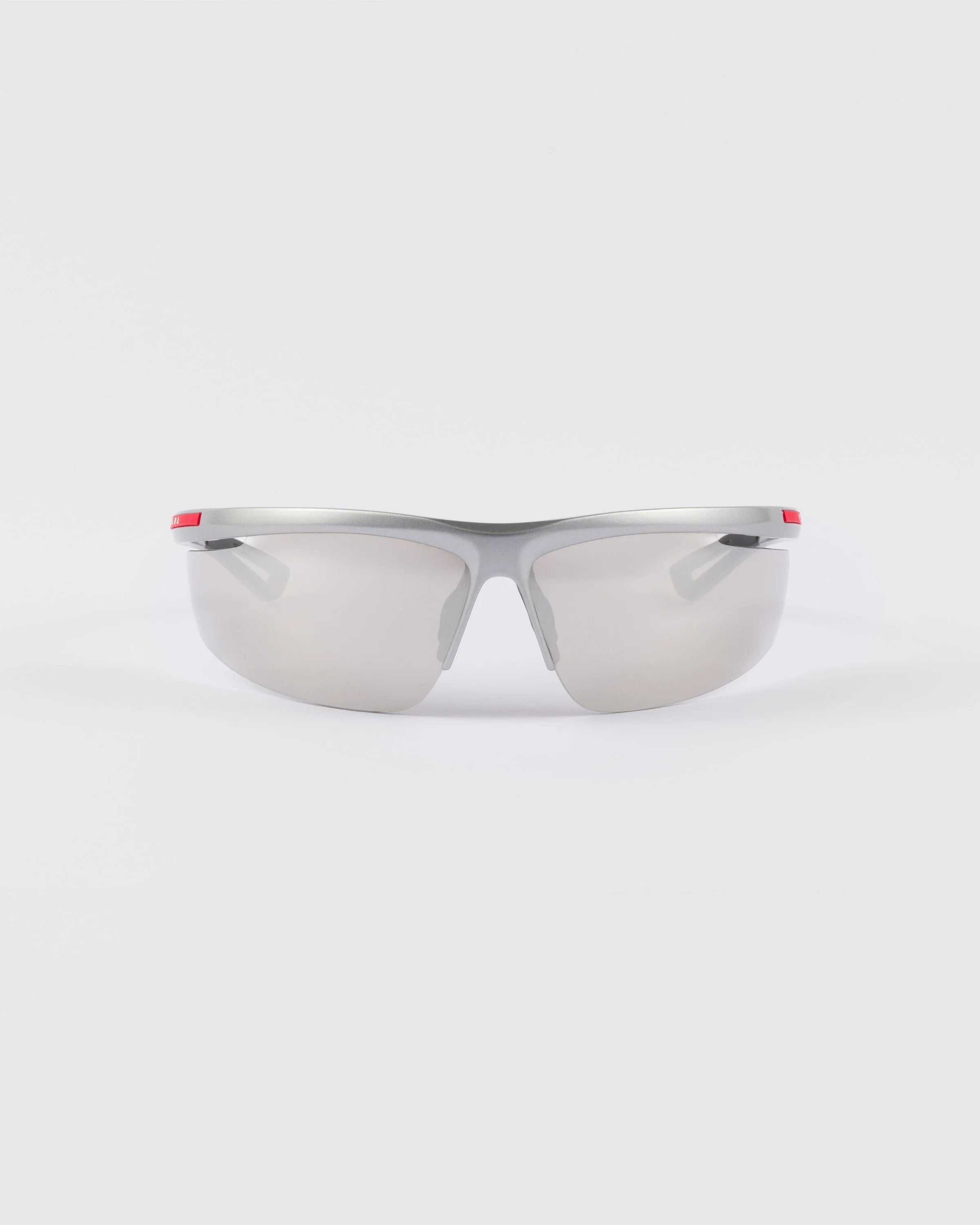 Sporty nylon fiber sunglasses characterized by a contemporary aesthetic and maximum technological excellence. The wraparound design defines the ultra-light frame with ventilation system, suitable for sports performances in extreme conditions. The highly functional lenses improve peripheral vision and have an innovative ventilation system on the side. Special customization inside the temples features the geo-coordinates of the Luna Rossa base in Barcelona, a crucial site of the 37th America's Cup sailing competition. The holes on the temple tips are for attaching the exclusive waterproof Lycra® glasses cord decorated with the iconic Linea Rossa red line. - Product code: SPSA02_E14Z_FE05A_C_096 - Special Collection - Nylon frame front - Color: Luna Rossa Gray - Frame not compatible with graduated lenses - 100% UVA / UVB protection - Standard fit - Lens-nose-temple measurements: 96-10-130 mm - Article comes with dedicated packaging - Other colors available - Imported MATERIALS Acetate