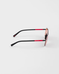 Classic pilot sunglasses reinterpreted with a modern twist. The metal frame has lenses with clean lines and is characterized by an ergonomic, rubber nose pad that ensures an extremely comfortable fit. The slim temples have a cubic shape and are decorated with the Prada Linea Rossa logo. - Product code: SPSB51_E1BO_FE90U_C_056 - Metal frame front - Opaque Black - Frame not compatible with graduated lenses - 100% UVA / UVB protection - Adjustable nose pads suitable for any fit - Lens-nose-temple measurement: 56-17-145 mm - Article comes with dedicated packaging - Other colors available - Imported MATERIALS Metal