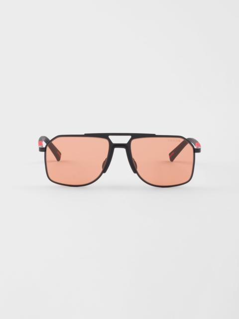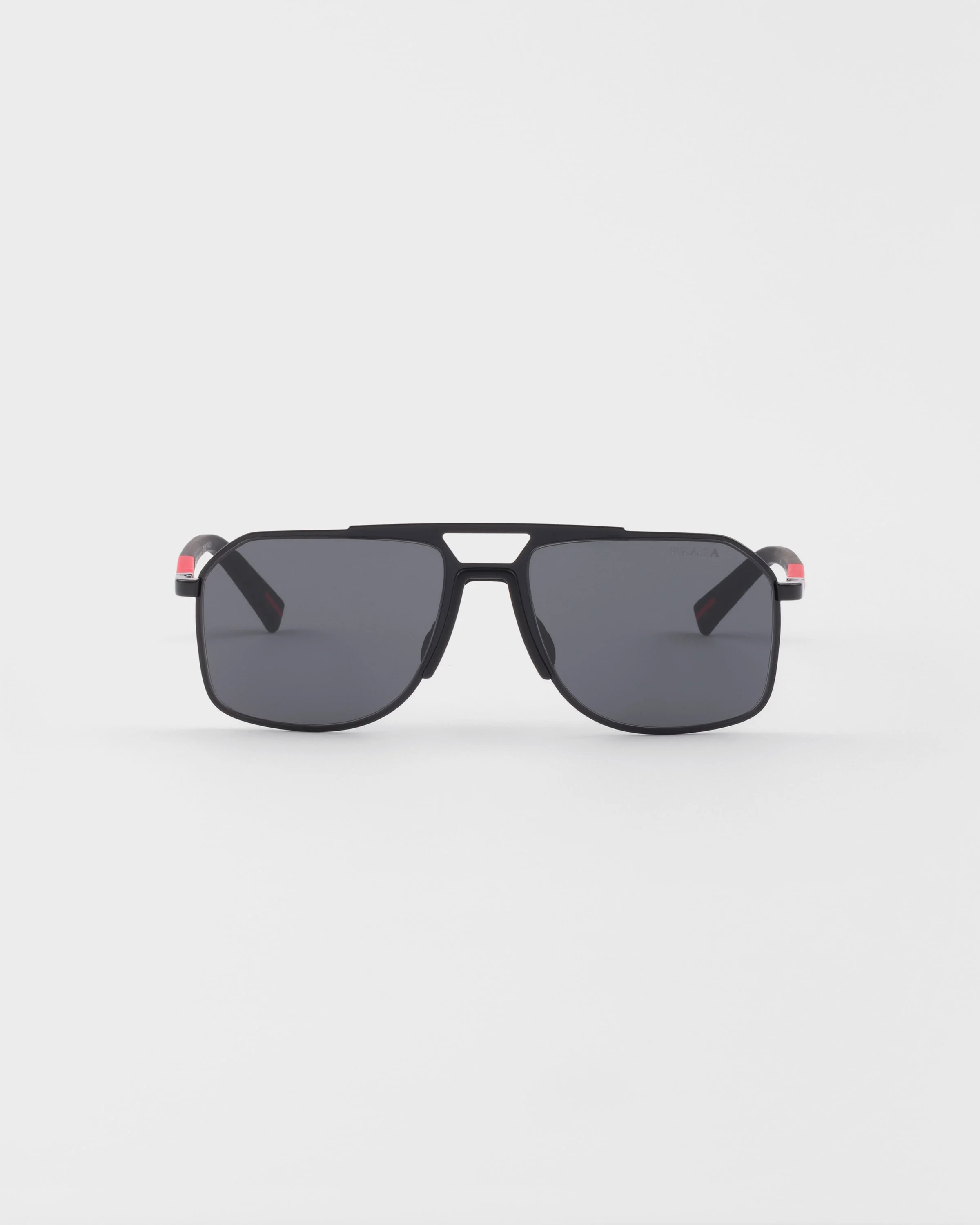 Classic pilot sunglasses reinterpreted with a modern twist. The metal frame has lenses with clean lines and is characterized by an ergonomic, rubber nose pad that ensures an extremely comfortable fit. The slim temples have a cubic shape and are decorated with the Prada Linea Rossa logo. - Product code: SPSB51_E1BO_FE06F_C_056 - Metal frame front - Opaque Black - Frame not compatible with graduated lenses - 100% UVA / UVB protection - Adjustable nose pads suitable for any fit - Lens-nose-temple measurement: 56-17-145 mm - Article comes with dedicated packaging - Other colors available - Imported MATERIALS Metal