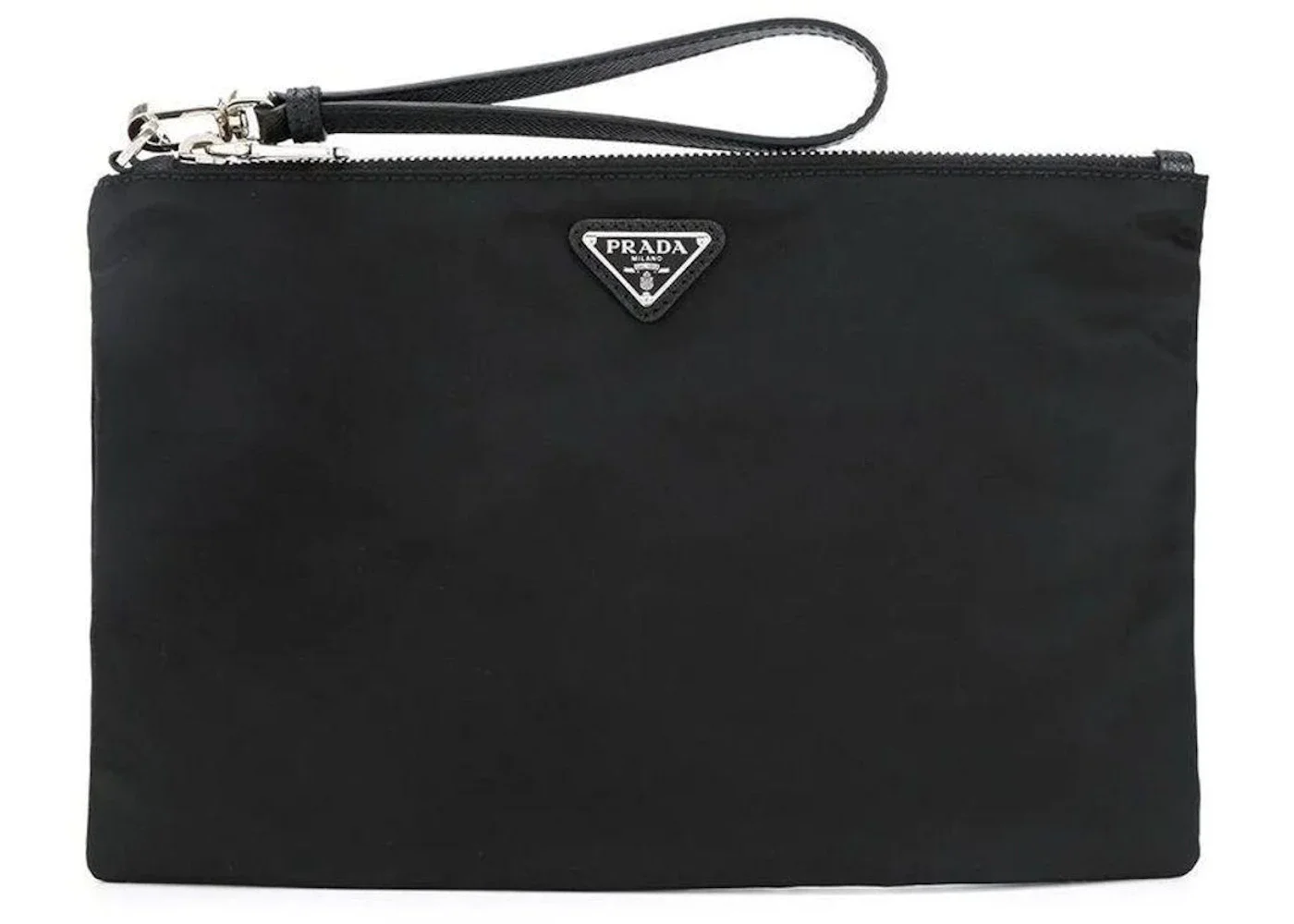 Please Note: This item comes with a dust bag, the box is not required. - Dimensions 10.6H 6.7W 0.5D - Material Nylon - Color Black - Size Small - Style 2NH006064F0002 - Base Model Clutch Bag - Base Model Variety Nylon - Color Generic Black - Depth 0.5 - Featured false - Height 10.6 - Interior Color Black Nylon Interior - Styles Clutch - Width 6.7
