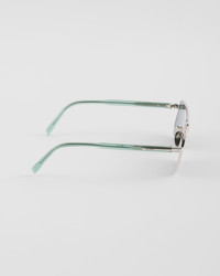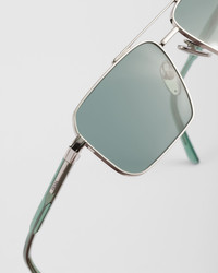 Metal sunglasses characterized by the classic rectangular front and the refined touch of the double bridge. The straight, ultra-thin temples feature the iconic metal element finely engraved with the Prada lettering logo. - Product code: SPRA57_E1BC_FE10G_C_061 - Metal frame front - Color: Silver - Frame compatible with graduated lenses - 100% UVA / UVB protection - Adjustable nose pads suitable for any fit - Lens-nose-temple measurement: 61-15-145 mm - Article comes with dedicated packaging - Other colors available - Imported MATERIALS Metal