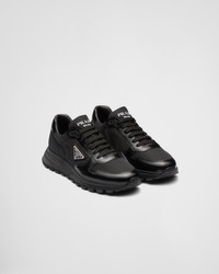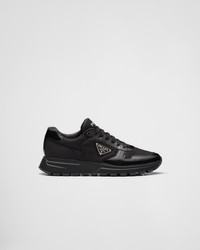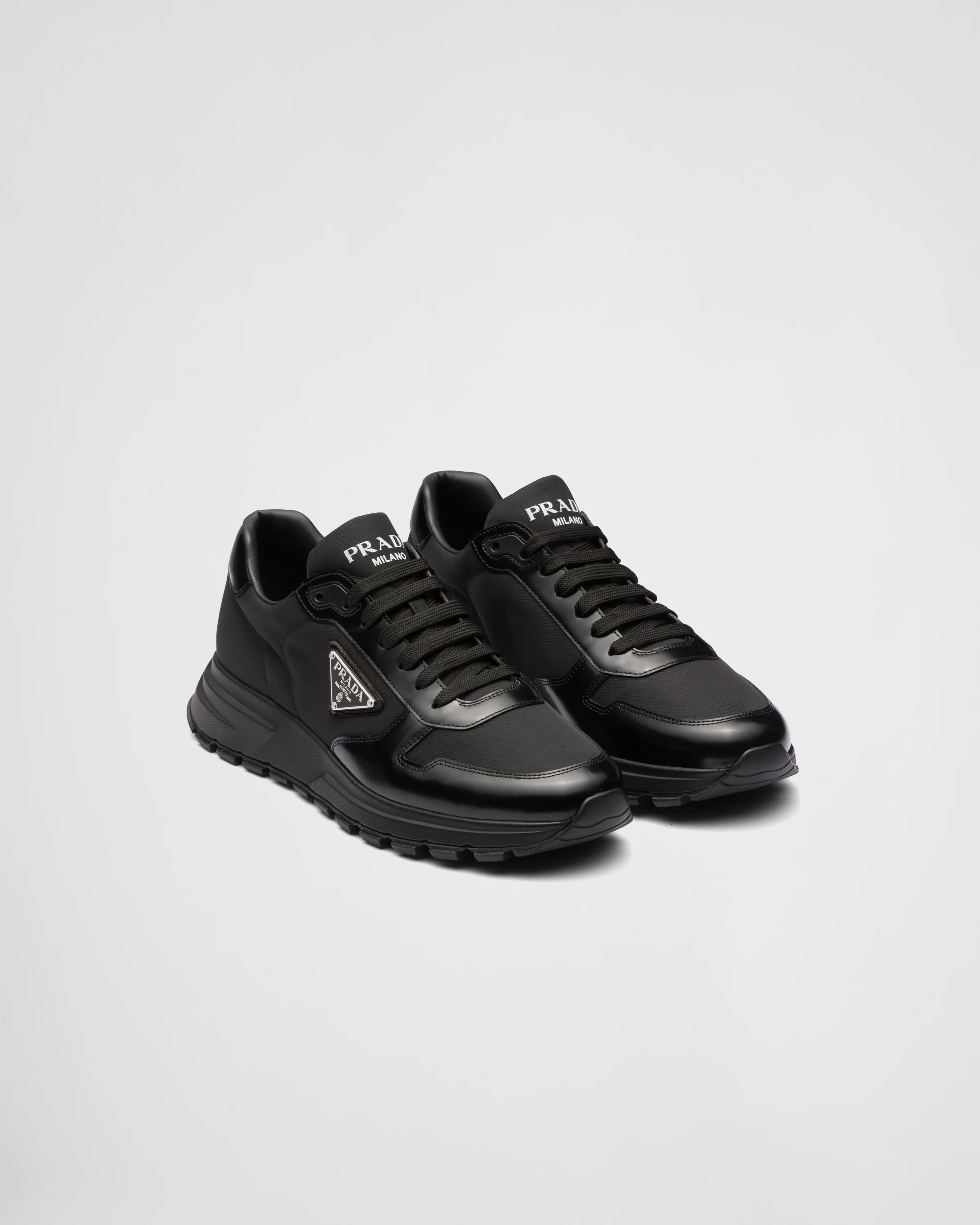These sneakers combine an elegant yet innovative design with technical materials typical of Prada collections. This shoe is made of Re-Nylon, an innovative material produced from recycled plastic materials collected in the ocean, and brushed leather. The triangle logo, imbued with a new sporty spirit, stands out on the side, while the chunky rubber tread sole gives the silhouette hybrid allure. This product does not contribute to the SEA BEYOND educational program. - Product code: 2EE369_3LF5_F0632_F_G000 - Laces - Enamel triangle logo on the upper - Prada Milano logo screen printed on the tongue - Light rubber sole with notched welt - 45 mm sole height - Removable leather-covered insole - Imported MATERIALS Main material: Recycled polyamide