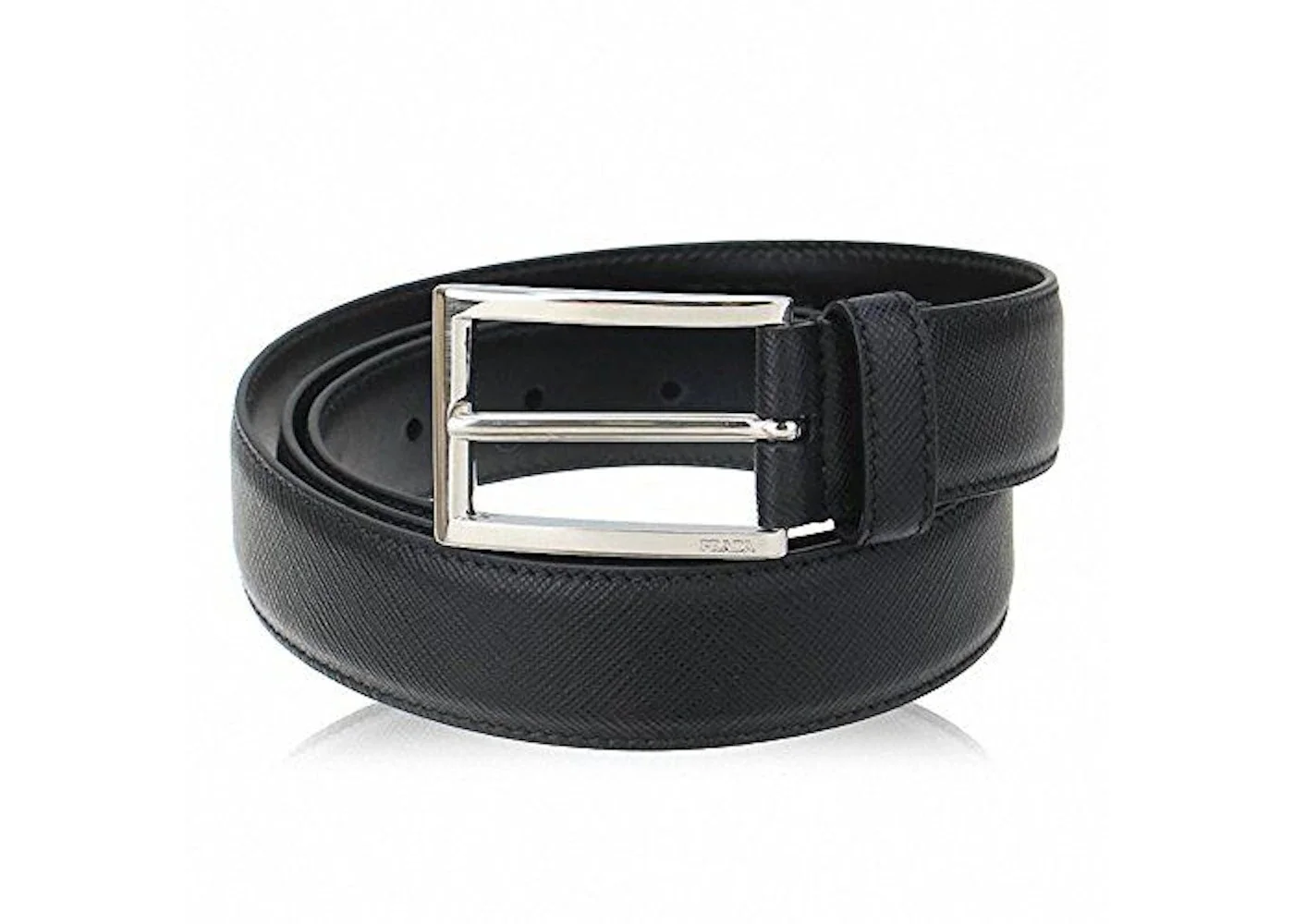 Prada Saffiano Cuir Leather Reversible Belt Black