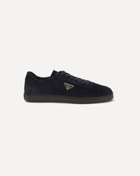 The suede Sneakers by Prada combine contemporary style with everyday comfort. Featuring a flat rubber sole and round toe, they are distinguished by the iconic triangular side-applied plaque and tone-on-tone logo on the back, adding a distinctive and refined touch to the design. DETAILS - Sku: 2EE394FG000E1D_F0008 - Season: AW25 - Composition: UPPER 100% Calf Leather Bos Taurus SOLE 100% Rubber - MADE IN ITALY
