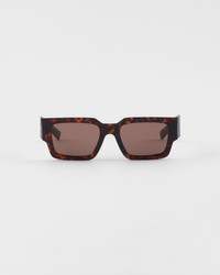 Acetate sunglasses with a contemporary, square design. The large front with bold rims is paired with faceted temples enhanced by the distinctive three-dimensional workmanship decorated with the Prada lettering logo. Several color variations feature a combination of acetate layers highlighted by contrasting colors on the rims. - Product code: SPRB17_E17N_FE06B_C_054 - Acetate frame front - Color: Briarwood Tortoiseshell - Frame compatible with graduated lenses - 100% UVA / UVB protection - Standard fit - Lens-nose-temple measurement: 54-20-145 mm - Article comes with dedicated packaging - Other colors available - Imported MATERIALS Acetate