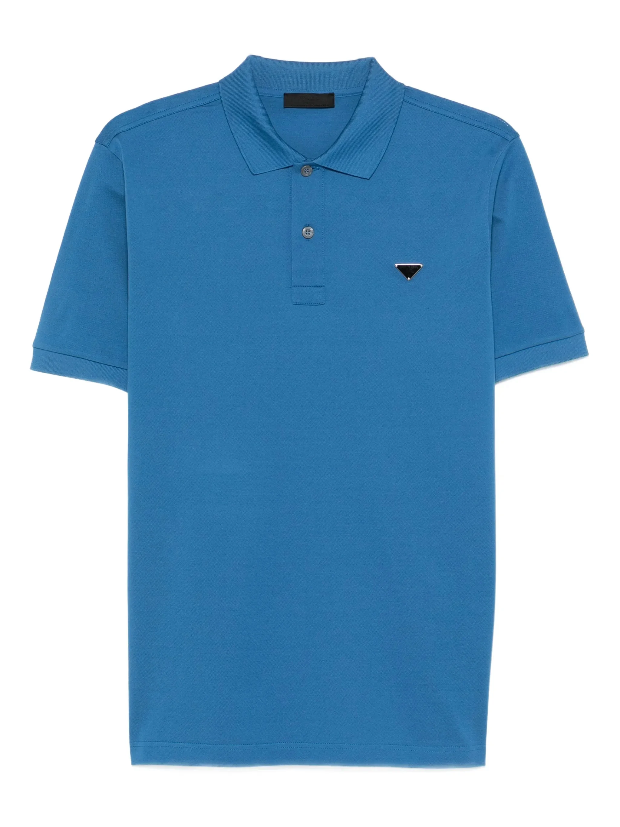 blue triangle logo applique front button placket short sleeves straight hem - Color: BLUE - Made in: Romania - Designer Style ID: UJN444 S WM3 1867 F0076 Composition and care Cotton: 100.0%