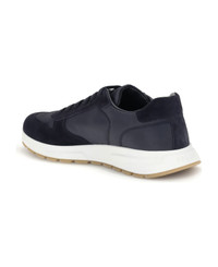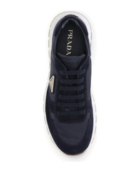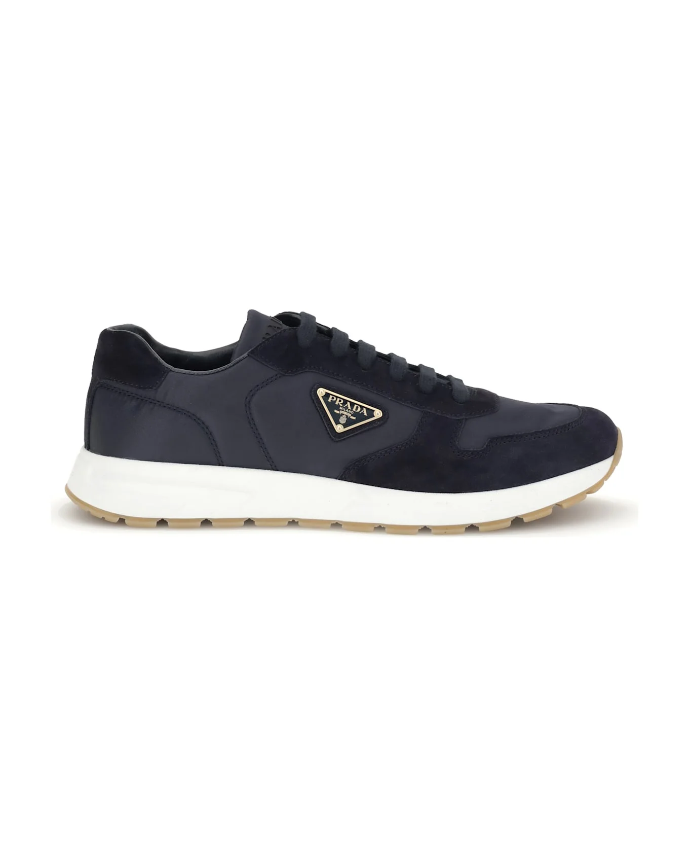 Prada's prax 01 re-nylon sneakers blend contemporary aesthetics and innovative materials. the upper with nylon lace loops lends a technical, modern look, enhanced by the enameled metal triangle logo and screen-printed lettering on the tongue. the lightweight foam sole with toothed tread provides comfort and grip, while the removable leather-covered footbed ensures a comfortable fit with refined details. Composition: 100% % Recycled Polyamide, 100% % Rubber Made in: Italy Model number: 2EE443FD002D7RF0008