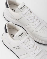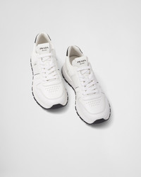 PRAX 01 sneakers are characterized by their elegant yet innovative design. The soft leather upper with mesh inserts are paired with a chunky rubber tread sole. Stitching trims the laced shoe. - Product code: 4E3571_3L3F_F0964_F_G000 - Laced - Mesh fabric and leather - With enameled metal eyelets and cotton laces - Prada screen-printed logo - Expanded rubber sole with geometric pattern - Rubber lug tread - 40 mm soles - Removable leather-covered insole MATERIALS Fabric/Leather