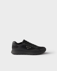 These fabric sneakers with a sporty silhouette and pragmatic, modern design are characterized by their comfortable rubber sole. The shoe, an evolution of the iconic Prax style, is decorated with the Prada logo. - Product code: 2EE437_1ABK_F0002_F_G000 - With logo laces - Upper with enameled eyelets - Enameled metal triangle logo on the upper and embossed Prada Milano logo on the tongue - Lightweight sole with lug tread - Sole height 30 mm - Removable leather-covered insole - Imported MATERIALS Main material: Polyester polyurethane recycled polyamide