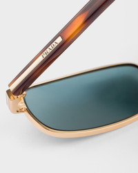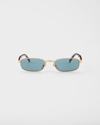 Metal sunglasses with a contemporary, minimalist design. The rectangular front is characterized by a sleek aesthetic, while the temples are embellished with the iconic metal element finely engraved with the logo. - Product code: SPRB54_E5AK_FE40K_C_054 - Metal frame front - Color: Gold - Frame compatible with graduated lenses - 100% UVA / UVB protection - Adjustable nose pads suitable for any fit - Lens-nose-temple measurements: 54-20-145 mm - Article comes with dedicated packaging - Other colors available - Imported MATERIALS Metal
