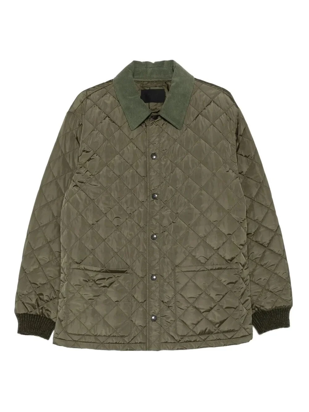Composition: Polyamide Made In: Italy|IT Regular fit In this quilted jacket, Re-Nylon takes on a new form, giving substance to movement. Every detail, from the collar to the buttons, contributes to a measured visual rhythm. Shirt collar Straight sleeve Button closure Patch pockets Knitted cuff Regular shoulder Straight hem Unlined and quilted Enamelled metal triangle on the front The fabric is made with a regenerated yarn, obtained from plastic waste recovered from the oceans PRODUCT INFO: Product code SGD001_1WQ9_S_OOO F0161 MILITARE 100%Recycled PA