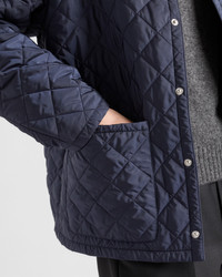 This quilted jacket with contrasting collar stands out for its pragmatic allure, emphasized by the innovative character of Re-Nylon. For sustainable care to preserve the product's characteristics and reduce microfiber shedding, we recommend not washing the item too often. Let the product air out after every use and have it dry cleaned at a specialized ecological dry cleaners. - Product code: SGC606_1WQ9_F0ABB_S_OOO - Regular fit - Shirt-style collar - Straight sleeve - Snap closure - Patch pockets - Straight cuff - Wide shoulder - Straight hem - Unlined - With removable inner vest - Enameled metal triangle logo on the front - The fabric is made with regenerated yarn obtained from recycled plastic materials collected in the ocean - Imported - The model is 188 cm tall and wears a size 48 Height: 72cm MATERIALS Main material: 100% recycled polyamide