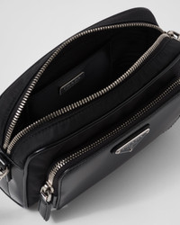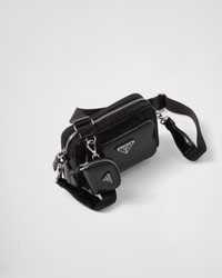 This shoulder bag made of Re-Nylon and brushed leather combines a contemporary design with the functionality of innovative regenerated nylon fabric. The versatile silhouette, defined by a practical external zipper pocket, it is completed by the adjustable shoulder strap with a removable mini-pouch. The enameled metal triangle logo adds its distinctive signature touch to the accessory. This product does not contribute to the SEA BEYOND educational program. - Product code: 2VH172_789_F0002_V_OOT - Detachable, adjustable nylon tape and leather shoulder strap with removable pouch - Enameled metal triangle logo on the front - Zipper closure - One external zipper pocket - Interior with patch pocket - logo-print Re-Nylon lining - Height: 11cm - Width: 18cm - Length: 5cm - Imported MATERIALS Fabric/leather