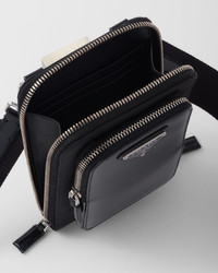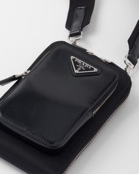 This pragmatic and contemporary smartphone case is enhanced by the combination of Re-Nylon and brushed leather, two of Prada's emblematic materials. The accessory with a functional design has a comfortable removable shoulder strap and an external zipper pocket. The enameled metal triangle logo completes the accessory with an iconic touch. This product does not contribute to the SEA BEYOND educational program. - Product code: 2ZT060_789_F0002 - Zipper closure - Enameled metal triangle logo - Three card slots - Detachable, adjustable nylon tape shoulder strap - Height: 18cm - Width: 11cm - Imported MATERIALS Fabric/leather