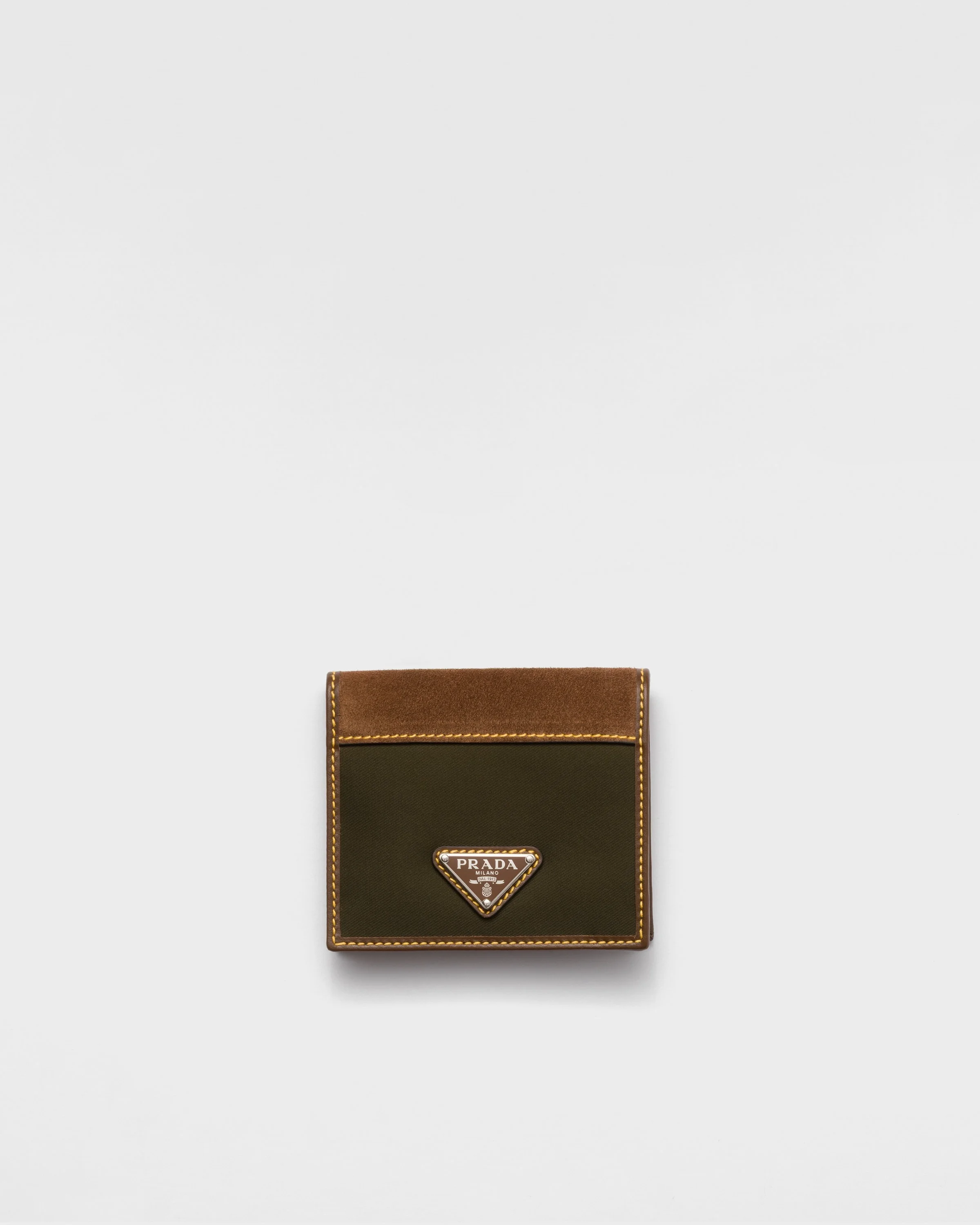 The sleek design of this wallet combines the classic elegance of leather with the modern and functional character of Re-Nylon. The triangle logo completes the accessory with a distinctive note. This product does not contribute to the SEA BEYOND educational program. - Product code: 2MO004_384_F041O - Enameled metal triangle logo - Eight card slots - One bill compartment - Moire and leather lining - Imported Height: 10cm Width: 9cm MATERIALS Main material: Recycled polyamide
