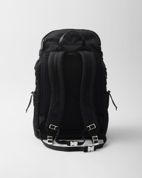 This roomy backpack with a technical look is made of Re-Nylon, the innovative technical fabric produced from recycled plastic trash collected in the ocean. The accessory features Saffiano leather details. Saffiano leather, an iconic Prada material, is synonymous with luxury and is identified with traditional Italian leather manufacturing. The leather of the highest quality is defined by the crosshatch pattern and waxed finish. For sustainable care to preserve the product's characteristics and reduce microfiber shedding, we recommend not washing the item too often. Let the product air out after every use and have it dry cleaned at a specialized ecological dry cleaners. - Product code: 2VZ090_2DMG_F0002_V_OOO - With strap and side-release buckle - Leather handle - Adjustable woven nylon tape straps - Enameled metal triangle logo on the flap - Flap closure with side-release buckle - Five external zipper pockets and two bottle pockets with drawstring - Padded mesh fabric back - Zipper pocket and patch pocket inside - Re-Nylon lining - Imported Height: 57cm Width: 32cm Length: 19cm MATERIALS Main material: Recycled polyamide