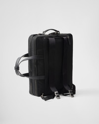 This pragmatic and refined briefcase is made of Re-Nylon, the sustainable evolution of a distinctive material of Prada collections. Enhanced with Saffiano leather details, the style made of regenerated nylon presents a versatile and functional structure characterized by two compartments, several zipper pockets, and a trolley band. The roomy accessory, which can also be transformed into a backpack if needed, is completed by the iconic signature of the enameled metal triangle logo. For sustainable care to preserve the product's characteristics and reduce microfiber shedding, we recommend not washing the item too often. Let the product air out after every use and have it dry cleaned at a specialized ecological dry cleaners. - Product code: 2VE015_2DMH_F0002_V_XOO - With two compartments - Flat leather handles - Detachable, adjustable nylon tape shoulder strap - Enameled metal triangle logo on the front - Zipper closure and lock - Removable leather name tag - External zipper pocket - Trolley band on the back - Interior with zipper pocket and patch pocket and a small patch pocket - Logo-print nylon lining - Can be transformed into a backpack thanks to the harness straps stowed in the small back pocket - Imported Height: 31cm Width: 40cm Length: 11cm MATERIALS Main material: Recycled polyamide