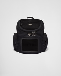 A travel accessory designed to carry your pet, this backpack pet bag is made with a combination of iconic materials of the brand: Saffiano leather and nylon, a fabric first introduced in the luxury world by Prada. Decorated with the iconic triangle logo, the equipped design has external pockets and essential pet care accessories inside like a strap for the collar, food bowl and pet waste bag holder. For sustainable care to preserve the product's characteristics and reduce microfiber shedding, we recommend not washing the item too often. Let the product air out after every use and have it dry cleaned at a specialized ecological dry cleaners. - Product code: 2VZ083_2DMT_F0002_V_OOO - Saffiano leather handle - Adjustable woven nylon strap - Enameled metal triangle logo on the front - Zipper closure - Pet waste bag holder - Two external zipper pockets - Padded mesh back - Interior with removable bottom, strap for the collar and food bowl - Re-Nylon lining - Imported Height: 41cm Width: 28cm Length: 28cm MATERIALS Fabric/Leather