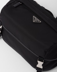Technologically innovative fabrics meet classic traditional materials in the new Spring Summer 2021 collection. Garments and accessories reveal new volumes and celebrate contradiction. This Re-Nylon bag with Saffiano leather details blends past and future, luxury and simplicity. Re-Nylon, a functional fabric and vehicle of experimentation, is a regenerated nylon yarn produced from recycled and purified plastic trash collected in the ocean, fishing nets, and textile fiber waste. It is combined in this bag with Prada's iconic Saffiano leather: calf leather of the highest quality defined by a crosshatch texture and wax finish. For sustainable care to preserve the product's characteristics and reduce microfiber shedding, we recommend not washing the item too often. Let the product air out after every use and have it dry cleaned at a specialized ecological dry cleaners. - Product code: 2VH994_2DMG_F0002_V_OOO - Adjustable woven nylon tape shoulder strap - Enameled metal triangle logo on the flap - Flap closure with side-release buckle - Two external zipper pockets - Two internal zipper pockets - Re-Nylon lining - Imported Height: 15.5cm Width: 27cm Length: 14cm MATERIALS Main material: Recycled polyamide