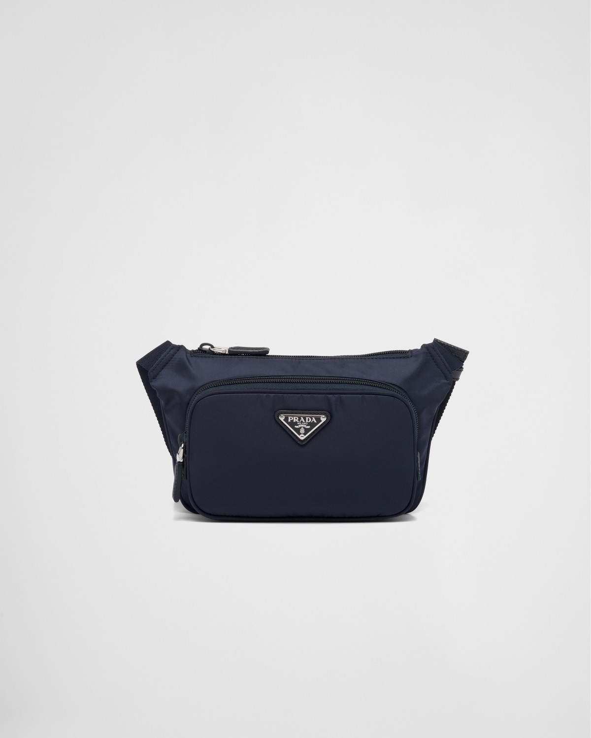 Technologically innovative fabrics meet classic traditional materials in the new Spring Summer 2021 collection. Garments and accessories reveal new volumes and celebrate contradiction. This Re-Nylon bag with Saffiano leather details blends past and future, luxury and simplicity. Re-Nylon, a functional fabric and vehicle of experimentation, is a regenerated nylon yarn produced from recycled and purified plastic trash collected in the ocean, fishing nets, and textile fiber waste. It is combined in this bag with Prada's iconic Saffiano leather: calf leather of the highest quality defined by a crosshatch texture and wax finish. - Product code: 2VH128_2DMG_F0008_V_OOO - Adjustable woven nylon belt with side-release buckle - Enameled metal triangle logo on the front - Zipper closure - One external zipper pocket - Re-Nylon lining - Height: 13cm - Length: 2.5cm - Width: 19cm MATERIALS Fabric