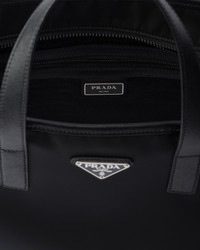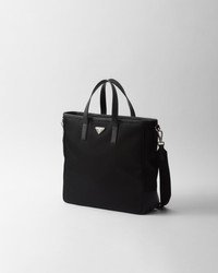 This tote bag made of innovative Re-Nylon, a sustainable fabric that can be regenerated indefinitely, stands out for its sleek, elegant design. Its compact silhouette is highlighted by the fine Saffiano leather details defined by a crosshatch texture and waxed finish. For sustainable care to preserve the product's characteristics and reduce microfiber shedding, we recommend not washing the item too often. Let the product air out after every use and have it dry cleaned at a specialized ecological dry cleaners. - Product code: 2VG064_2DMH_F0002_V_XOO - Flat leather handles - Detachable adjustable nylon tape and leather shoulder strap - Enameled metal triangle logo on the front - Zipper closure - Interior with zipper pocket - Logo-print Re-Nylon lining - Imported Height: 34cm Width: 36cm Length: 10cm MATERIALS Main material: Recycled polyamide
