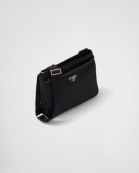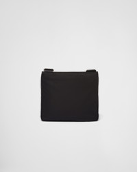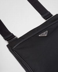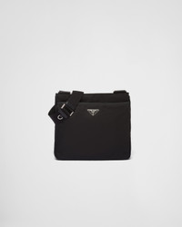 A slim silhouette with a square shape distinguishes this bag made of Saffiano leather and Re-Nylon, a regenerated yarn produced from plastic materials collected in the ocean. Provided with an adjustable woven nylon tape shoulder strap, the accessory with zipper closure is made iconic by the enameled metal triangle logo applied on the front. For sustainable care to preserve the product's characteristics and reduce microfiber shedding, we recommend not washing the item too often. Let the product air out after every use and have it dry cleaned at a specialized ecological dry cleaners. - Product code: 2VH118_2DMH_F0002_V_XOO - Adjustable woven nylon tape and leather shoulder strap - Enameled metal triangle logo on the front - Zipper closure - One external zipper pocket - Inner zipper pocket - Re-Nylon logo-print lining - Imported Height: 25cm Width: 28cm Length: 6cm MATERIALS Main material: Recycled polyamide