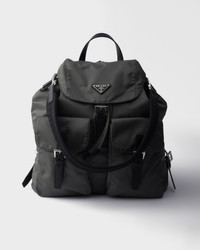 Minimalist, functional, and innovative, the Re-Nylon backpack sums up the codes of Prada's DNA with its unique and timeless design. Saffiano leather detailing and refined metal buckles add a refined character to the silhouette while preserving its functional and versatile spirit. - Product code: 2VZ110_2C26_F0048_V_MMO - With removable padded woven nylon tape handle - Flat leather handle - Adjustable woven nylon tape harness straps - Enameled metal triangle logo on the front - Closure with flap, strap, buckle and magnet - two external pockets - Interior with zipper pocket and patch pocket - Logo-print Re-Nylon lining - Imported Height: 39cm Width: 34cm Length: 15cm MATERIALS Main material: Recycled polyamide