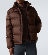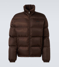 Offering a more sustainable take on a signature fabric, Prada’s Re-Nylon products are made from regenerated ocean plastic waste. This medium-weight down jacket showcases the same construction, complemented by a quilted finish and logo detailing on the chest. Product Details - Material: 100% polyamide (recycled) - Care instructions: hand wash - Made in Romania - Designer color name: Brown - Item color: brown - Filling: 100% polyester (recycled) - Filling II: 90% down, 10% feathers - Contains non-textile parts of animal origin - Closure: zipped front - Cuff: elasticated - Pockets: zipped pockets, internal pockets - Drawstring at the hem for adjustable fit - Item number: P01127332 Size & Fit - True to size - Straight fit - Adjustable hem - Falls to the hip - Height of model is 189cm-74.5" and wears a size L