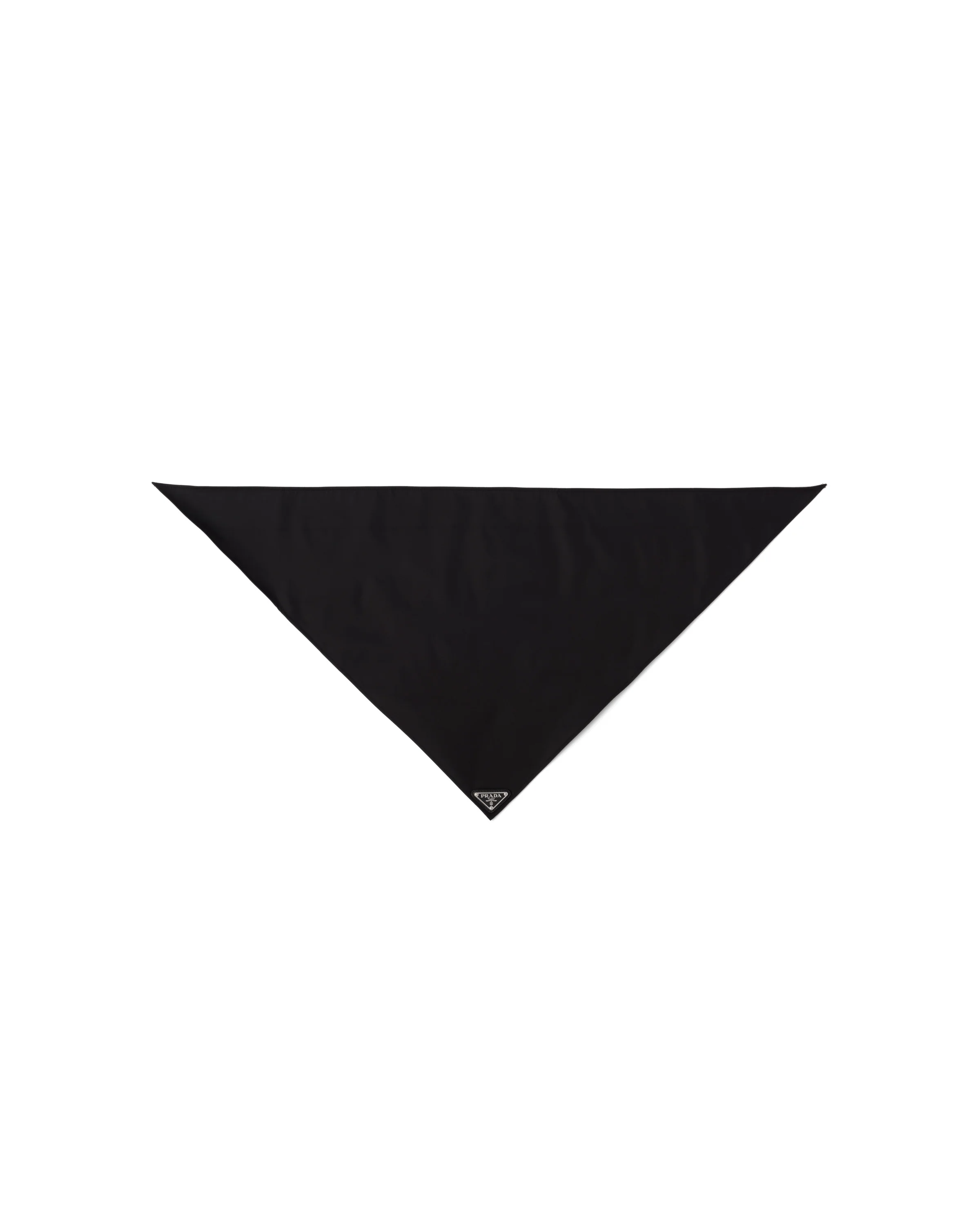 Re-Nylon, a technologically innovative fabric produced from recycled, purified plastic collected in the ocean, adds a contemporary note to a classic accessory like this foulard decorated with Prada's emblematic triangle logo. For sustainable care to preserve the product's characteristics and reduce microfiber shedding, we recommend not washing the item too often. Let the product air out after every use and have it dry cleaned at a specialized ecological dry cleaners. - Product code: 2FF036_1WQ8_F0002 - Enameled metal triangle logo - Imported Height: 55cm Width: 78cm MATERIALS Main material: Recycled polyamide