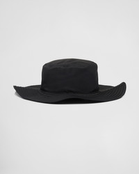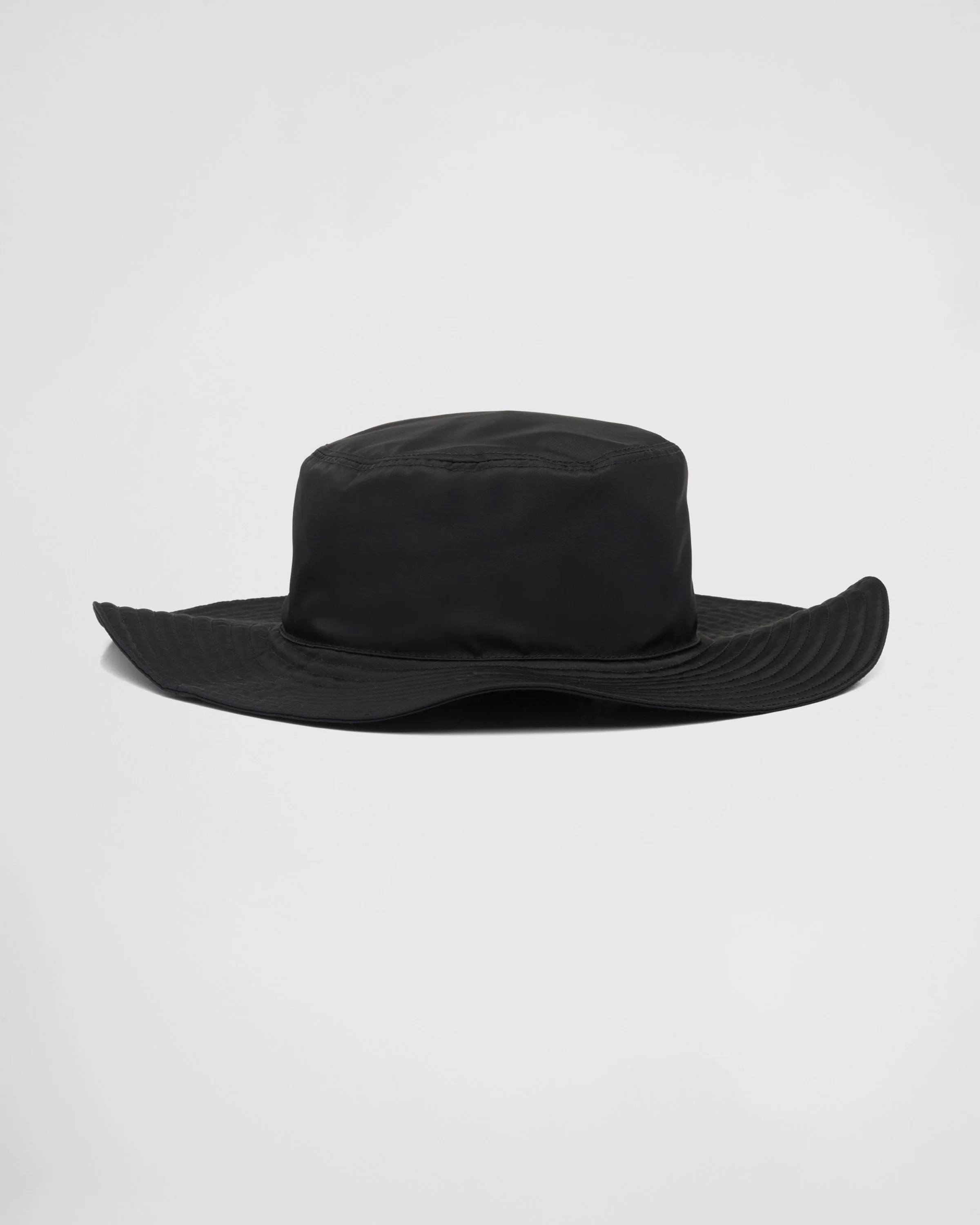 Innovative Re-Nylon fabric, which reflects Prada's sustainable soul and can be regenerated indefinitely, is produced from recycled plastic materials collected in the oceans. Here it is used for this wide-brimmed hat with adjustable chin strap. The enameled metal triangle logo gives the design an iconic note. For sustainable care to preserve the product's characteristics and reduce microfiber shedding, we recommend not washing the item too often. Let the product air out after every use and have it dry cleaned at a specialized ecological dry cleaners. - Product code: 2HC250_2DMI_F0002 - Enameled metal triangle logo - Cotton lining - Imported MATERIALS Main material: Recycled polyamide