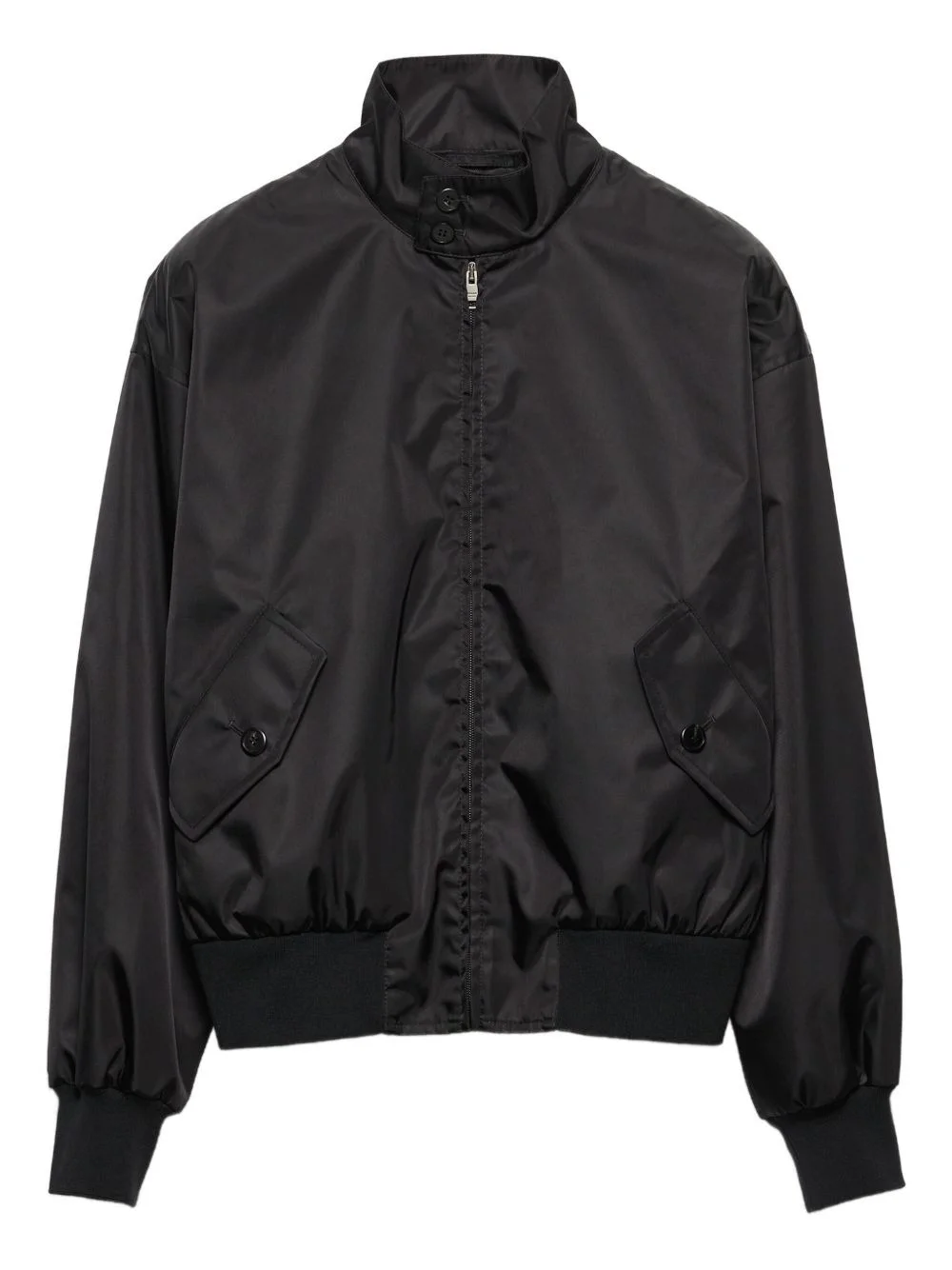 low-shoulder-sleeve zip-front jacket Highlights - Black - Stand-up collar - Zip closure - Welt pockets - Knit cuffs - Triangle logo Composition Recycled Nylon 100% Washing instructions Read Manufacturer Guidelines
