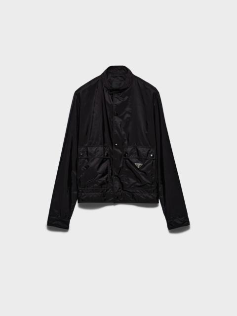 Pragmatic details and sleek lines define this Re-Nylon jacket, featuring a light silhouette with roomy utility-style pockets. For sustainable care to preserve the product's characteristics and reduce microfiber shedding, we recommend not washing the item too often. Let the product air out after every use and have it dry cleaned at a specialized ecological dry cleaners. - Product code: SGC833_1WQ9_F0401_S_OOO - Regular fit - Stand-up collar - Straight sleeves - Snap closure - Flap pockets - Cuff with strap and snap - Regular shoulder - Straight hem - Unlined - Enameled metal triangle logo - The fabric is made with regenerated yarn obtained from recycled plastic materials collected in the ocean - Imported - The model is 189 cm tall and wears a size 38 Height: 62cm MATERIALS Main material: 100% recycled polyamide