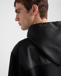 This cotton fleece hoodie with an oversized silhouette is defined by Re-Nylon details with functional style like the zipper pocket decorated with the triangle logo. - Product code: UJL04C_11JE_F0806_S_OOO - Oversized fit - Long sleeves - Attached Re-Nylon hood - Straight hem - Enameled metal triangle logo - Length: 74 cm, Size: M - Side pockets with snaps - Re-Nylon small zipper pocket - Imported - The model is 189 cm tall and wears a size 48 Height: 74cm MATERIALS Main material: 70% cotton 30% polyamide