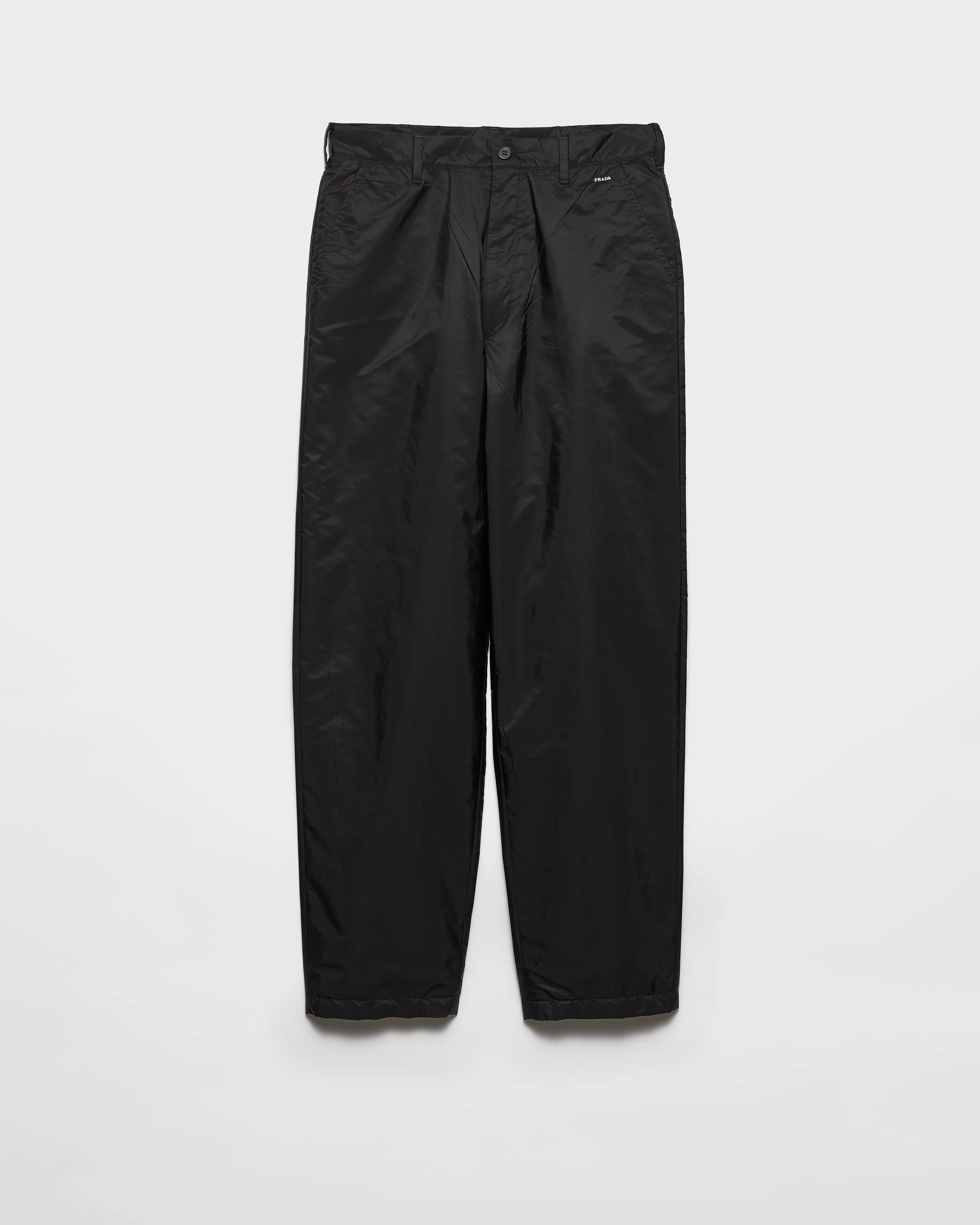 The tailored pants are renewed by the materials that define a hybrid garment blending sophistication and functionality. This Re-Nylon style combines Prada's emblematic codes, from the contemporary, minimalist cut to the distinctive creases on the finished garment, an expression of authentic, unconventional elegance. - Product code: SPH496_1WQ9_F0002_S_WMO - |Wide-leg fit - Zipper fly with button - Angled front slash pockets - Welt pockets with button on the back - Hem width: 23 cm - Embroidered lettering logo on the front - Light padding - The creases are an intrinsic feature due to pressing of the finished garment - The fabric is made of regenerated yarn obtained from recycled plastic materials collected in the ocean - Imported - The model is 188 cm tall and wears a size 48 Height: 110cm MATERIALS Main material: 100% Recycled Polyamide